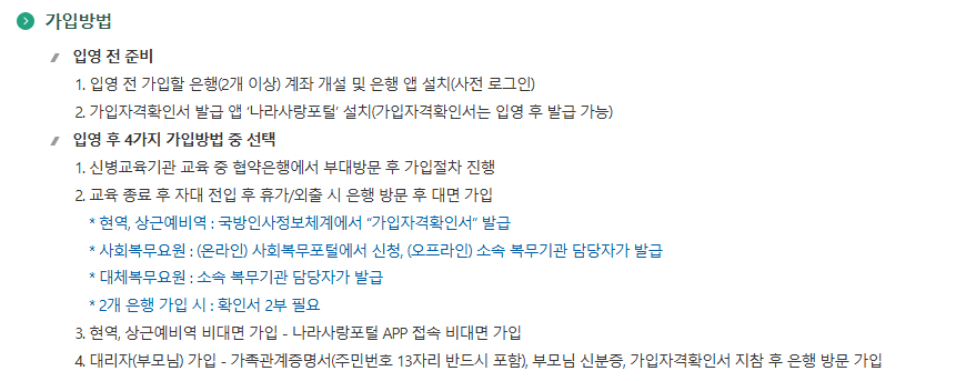 즉, 이 적금은 군 복무 중인 장병들이 미래를 준비할 수 있도록 돕기 위해 마련된 상품입니다. 이제부터 장병내일준비적금의 가입 방법, 금리, 장점 등에 대해 자세히 알아보겠습니다.