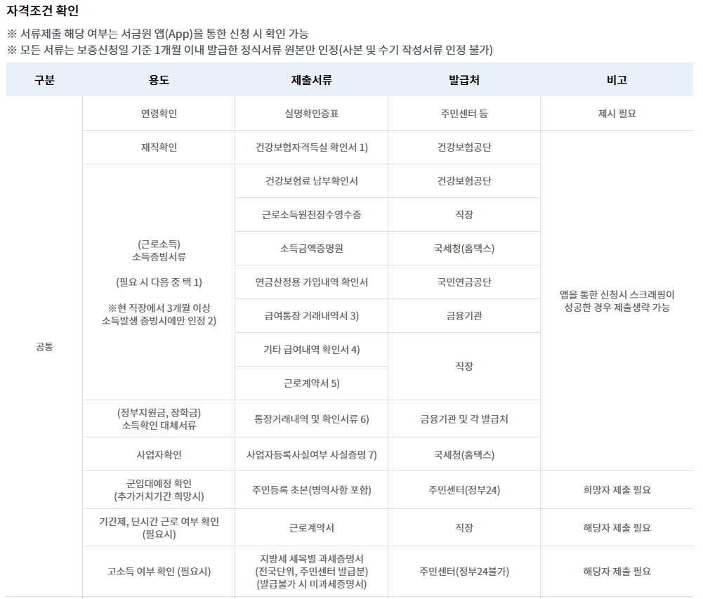 자격에 따라 제출 서류가 다르며 서류제출 해당 여부는 서민금융진흥원 어플에서 신청 시 확인 가능합니다.